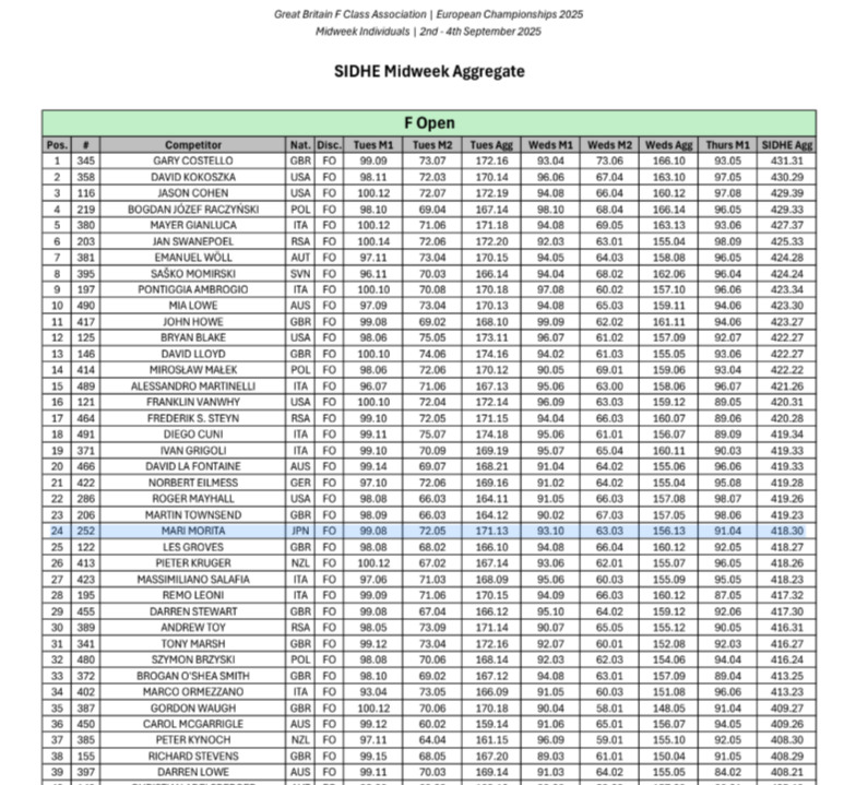 遅ればせながらのご報告になりますが、2025年9月頭に開催されたヨーロッパFクラス射撃大会に参加してきました。名門射撃場、イギリスのビスレーに行けて、感動もひとしおでした。来年は同地でFクラスの世界選手権大会が開催されるので、予行演習として各国の代表射手らがきておりました。例年のヨーロッパFクラス大会の参加人数は100-150人くらいとのことですが、今年は450人近くの参加となり大盛況でした。ただ参加人数が多いため1つの射座を3人で撃たなければならず、お互いスコアリングするので、ビスレー初心者かつF-Open参加初心者としてはだいぶ困惑しました。ですが、お陰様で恥ずかしくない点数を取ることができ、これまたはじめてF-Open団体戦の射手として撃つこともでき、大変よい経験を得ることができました。団体戦では銀メダルも取ることができて、個人戦とは異なるチームワークの楽しみを味わうことができました。